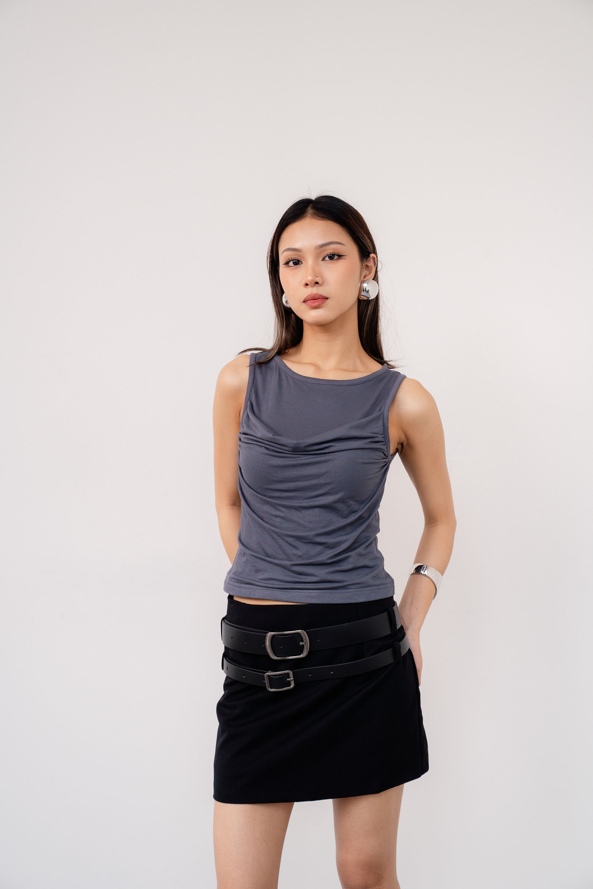 Designed in soft stretch fabric, the Berlin Top features subtle wavy ruching at the chest that adds effortless shape and texture—perfect for layering or wearing on its own.